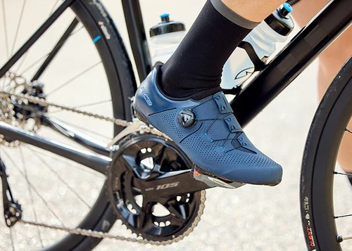 Surround wrapping upper and new BOA fit system with L6E dial are combined with low stack height midsole that reduces distance between the sole and pedal, providing enhanced power transfer when it matters most.